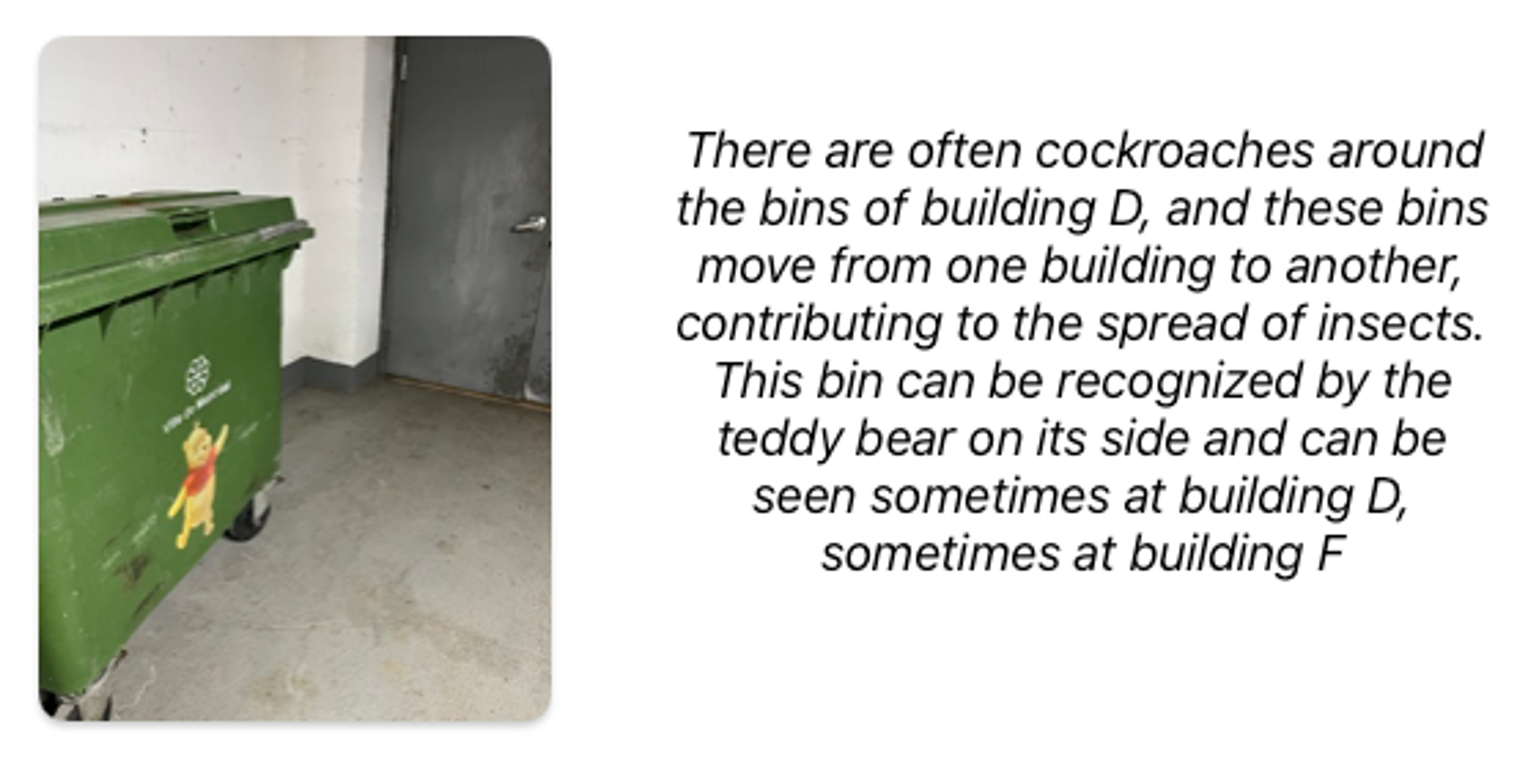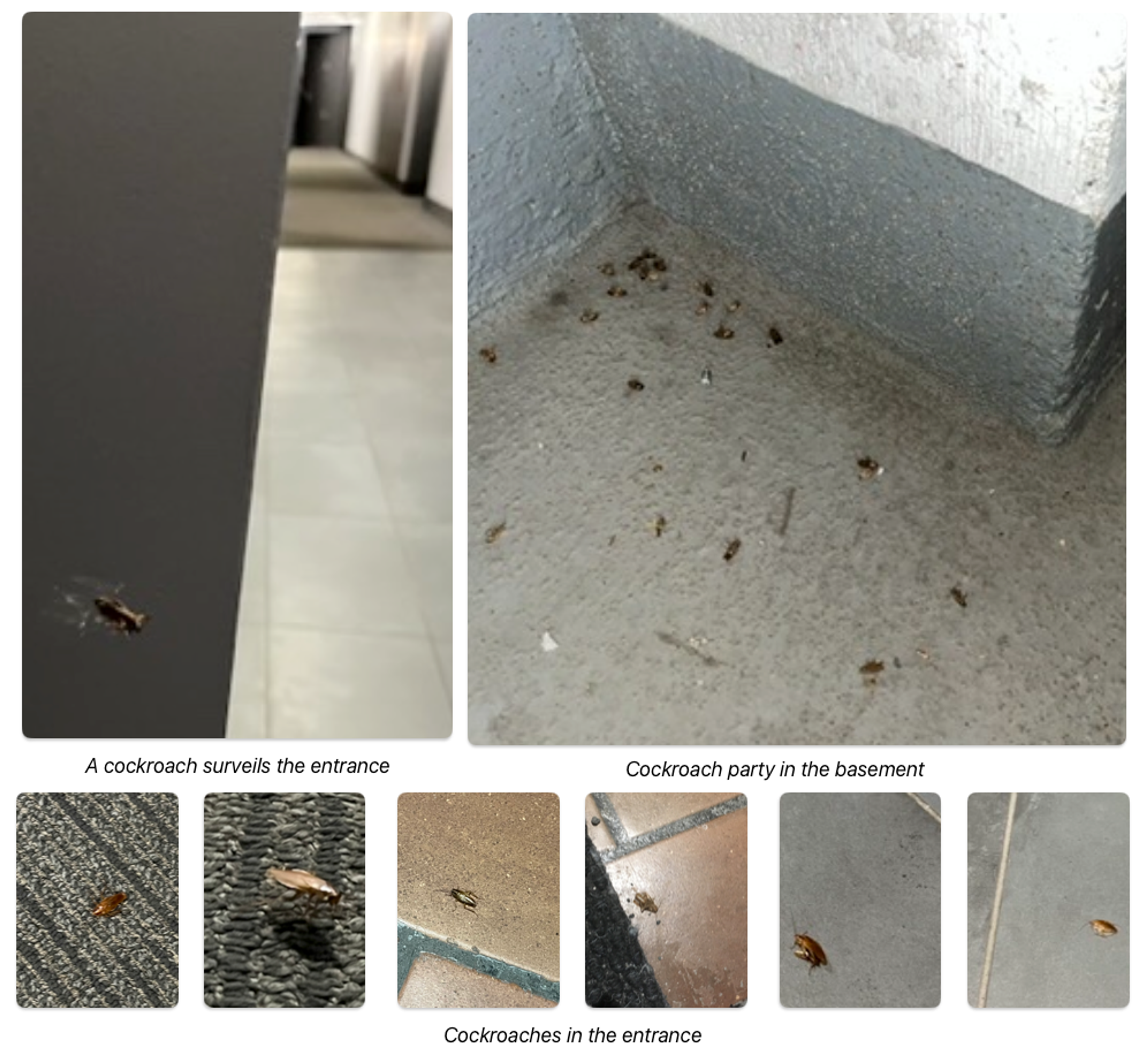 And indeed, as indicated by the traps, cockroaches can be seen in many places in building F.