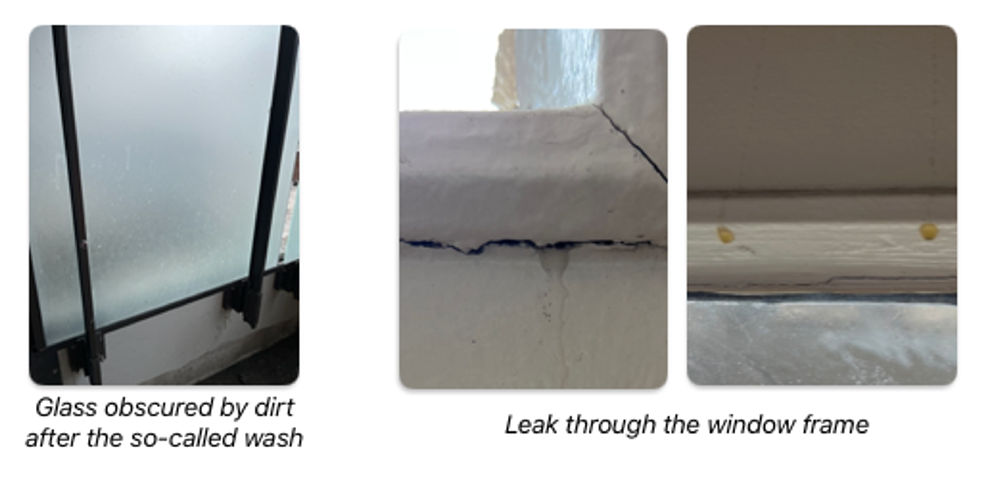 In addition to leaving dirt, the water jets have a disintegrating effect on the caulking and frames, creating gaping holes through which air rushes in.