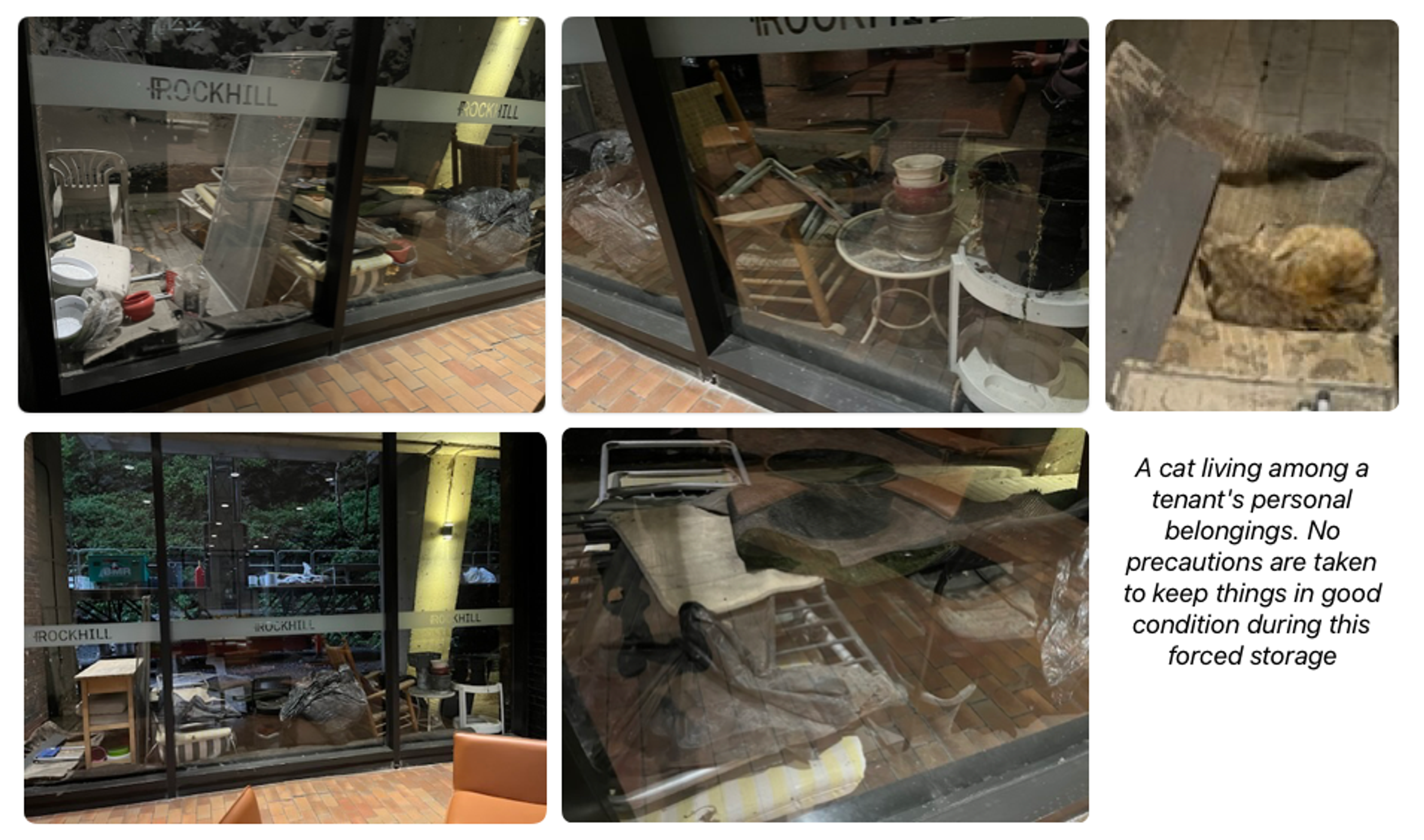 Recently, the administration decided to move an number of items along the exterior wall of the building to make room inside. These items are not secured and are at the mercy of the elements. It is likely that there will be a total loss for the tenants to whom they belong.