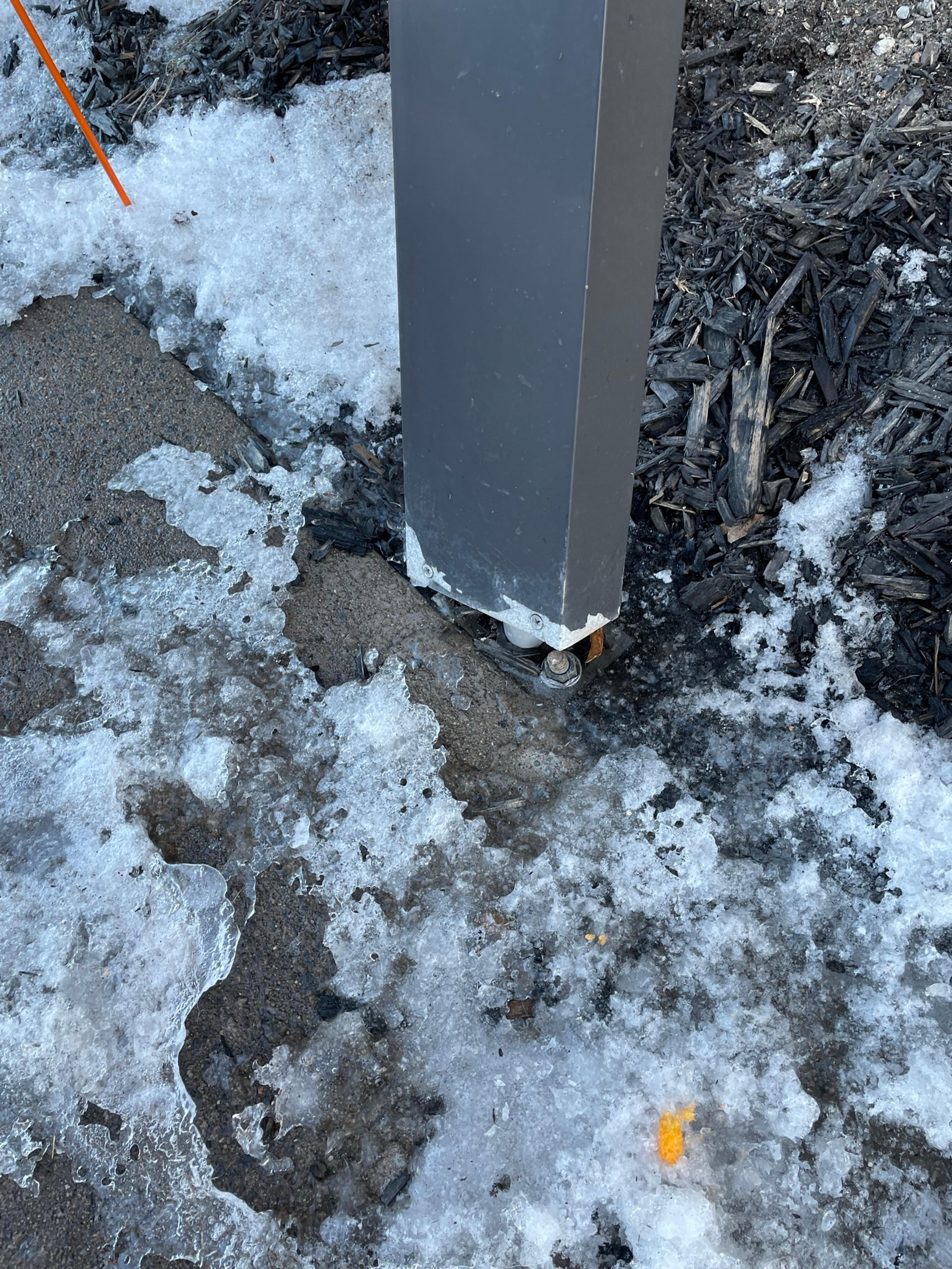 La neige a fondu, mais les lampadaires brisés continuent à trainer abandonnés par terre. On doit conclure que personne ne vérifie l'état du terrain ou alors il n'y a pas de consigne pour ramasser les choses brisées, encore moins de les réparer
