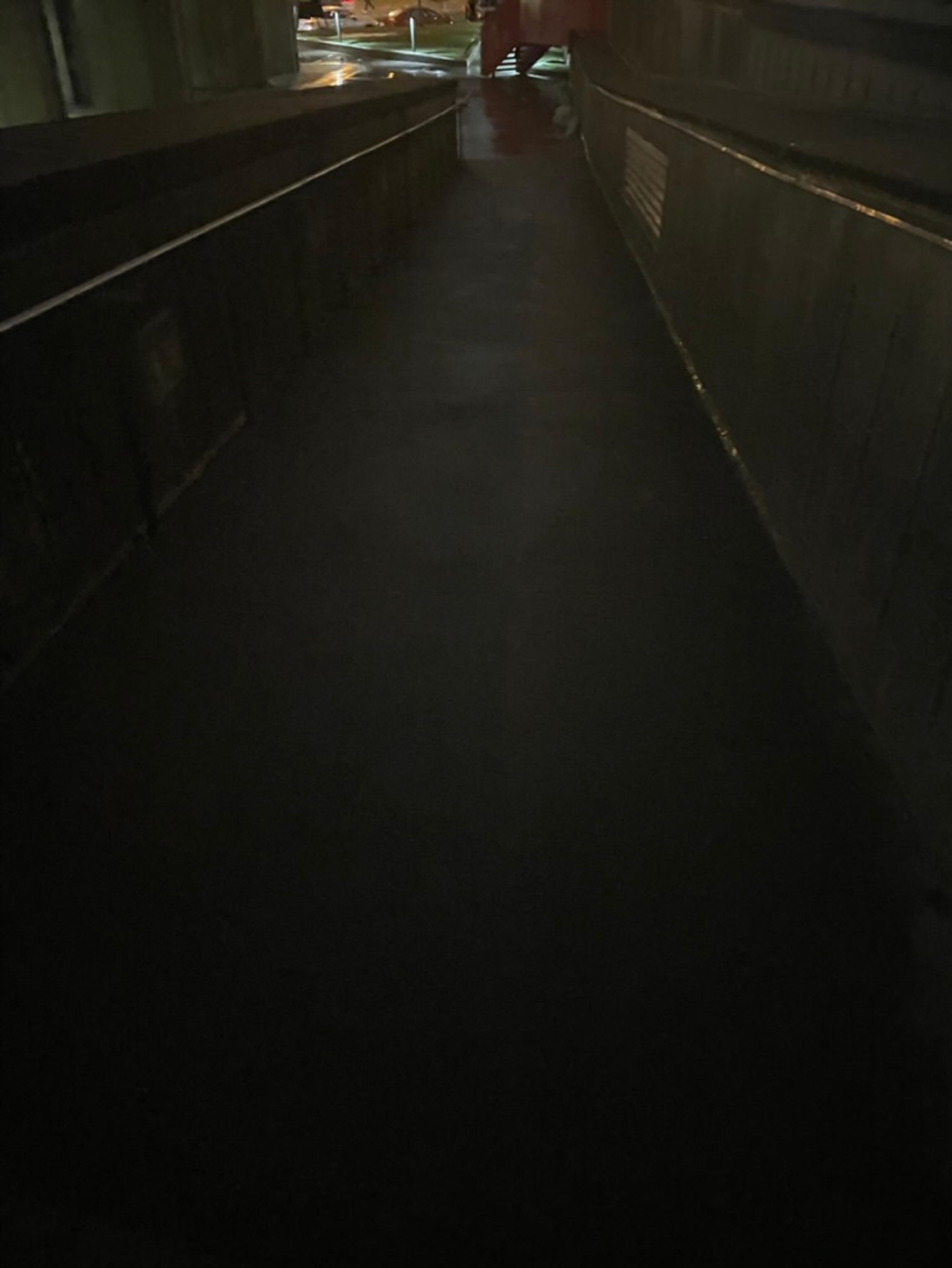 En plus d'être un risque de s'enfarger ou glisser, c'est un endroit qui n'inspire pas confiance pour les gens qui doivent rentrer tardivement.