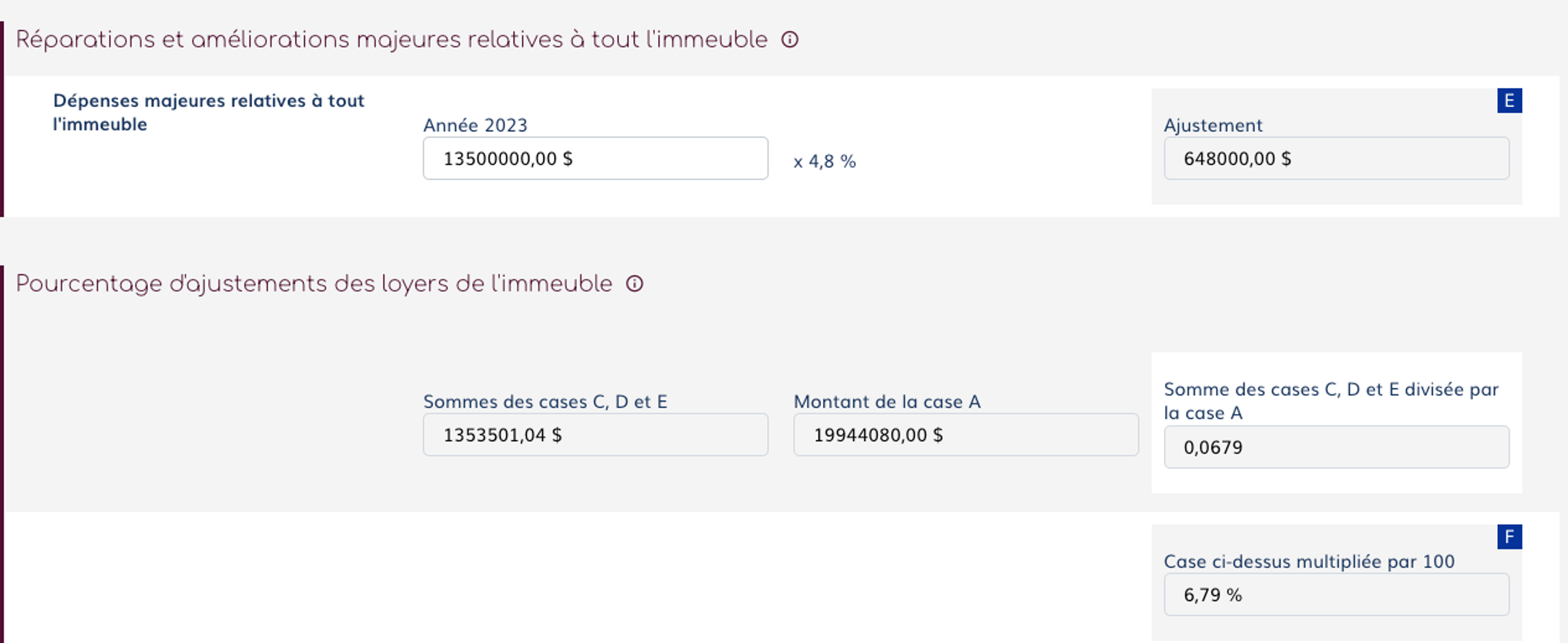 Si des dépenses d’immobilisation, des dépenses d’exploitation découlant de la mise en place d’un service ou de l’ajout d’un accessoire ou d’une dépendance, des frais de combustible ou des taxes de services ne concernent que certains des logements, la proportion est établie par rapport aux loyers et loyers estimés des logements bénéficiaires."